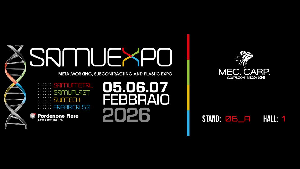 Mec. Carp S.r.l. a SAMUEXPO 2026 Mec. Carp. S.r.l. è entusiasta di annunciare la sua partecipazione a SAMUEXPO 2026, l’appuntamento per aziende e professionisti del settore meccanico e